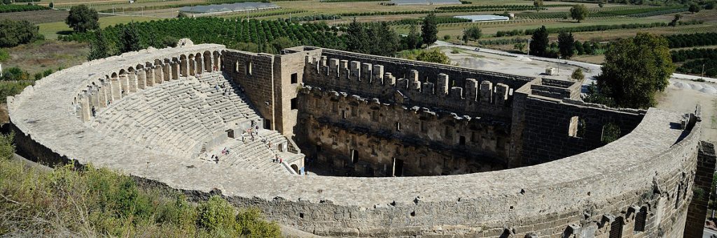 آمفی تئاتر آسپندوس یکی از پربازدید ترین بناهای تاریخی مورد علاقه گردشگران داخلی و خارجی است. که در قرن دوم میلادی، در زمان سلطنت مارکوس اورلیوس، توسط معمار به نام زنون ساخته شد. این تئاتر یکی از بزرگترین تئاترهایی است که رومیان در آسیای صغیر ساخته اند و امروزه یکی از بهترین نمونه های حفظ شده معماری تئاتر رومی است.